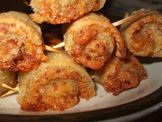 5 Avec un couteau à pain, trancher chaque tranche en 4 rouleaux, puis fixer avec un cure-dent.